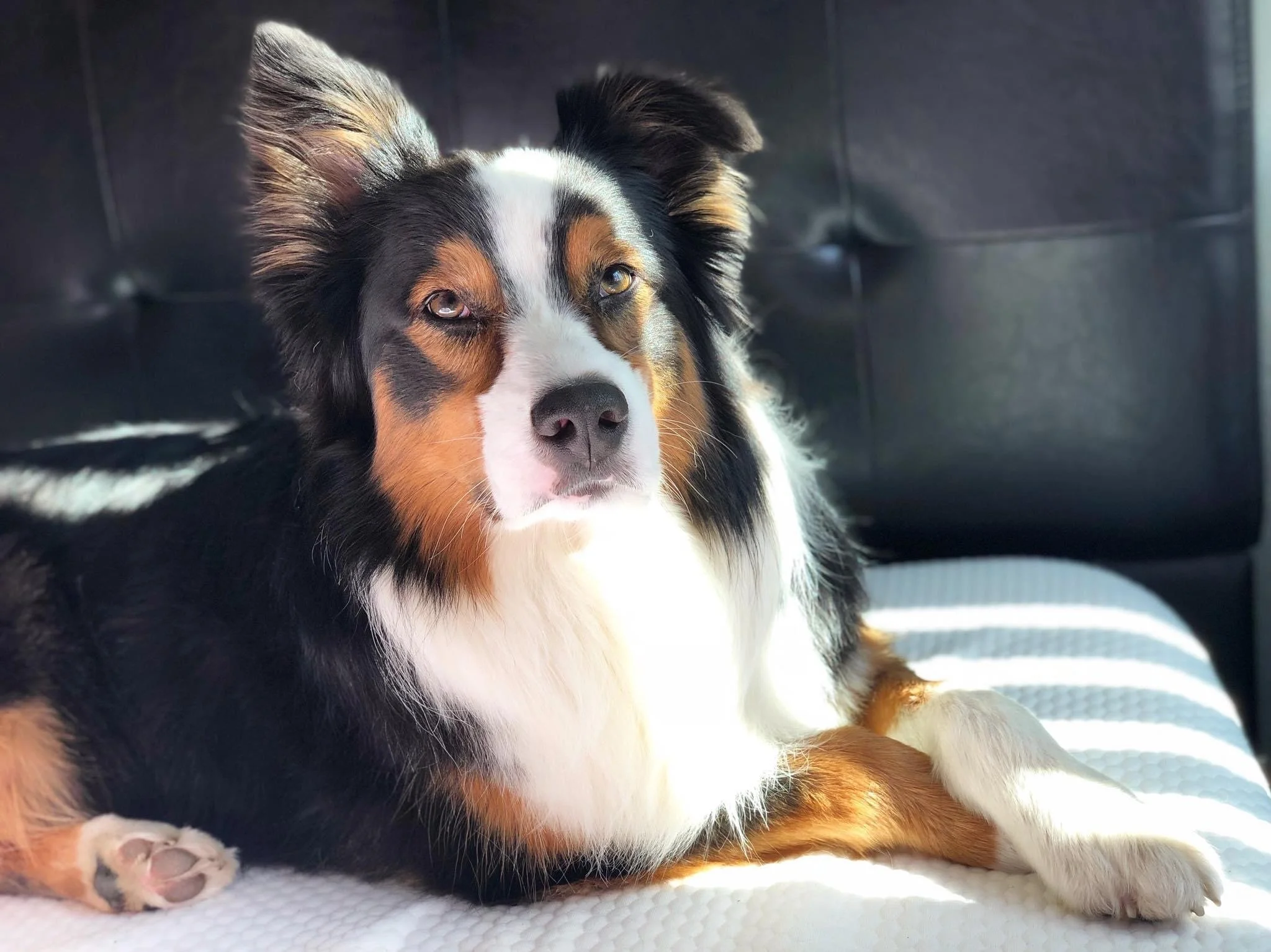 Boomer is our gorgeous AKC/ASCA boy who is 12 years old and retired. He enjoys sunbathing and lounging around the house in his older years.