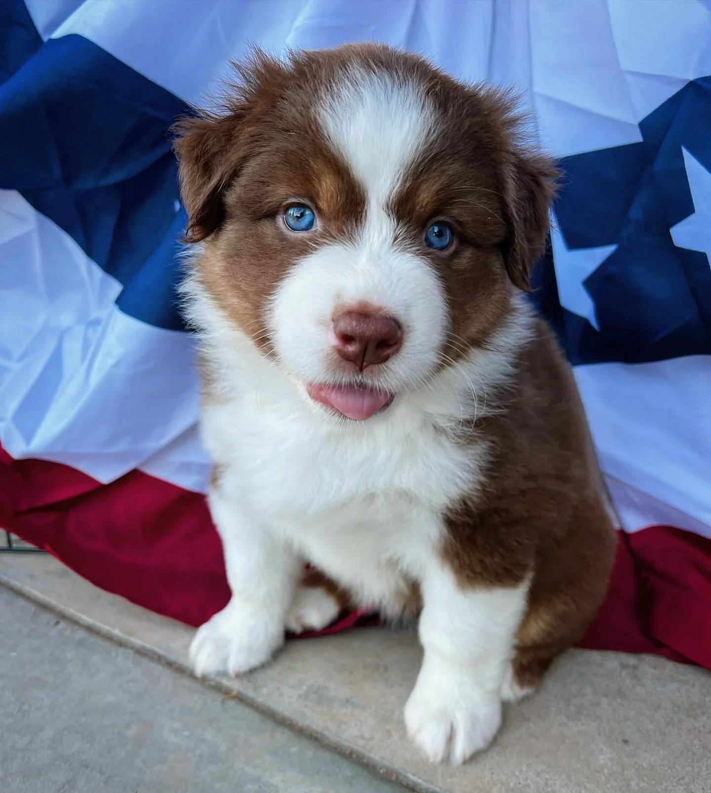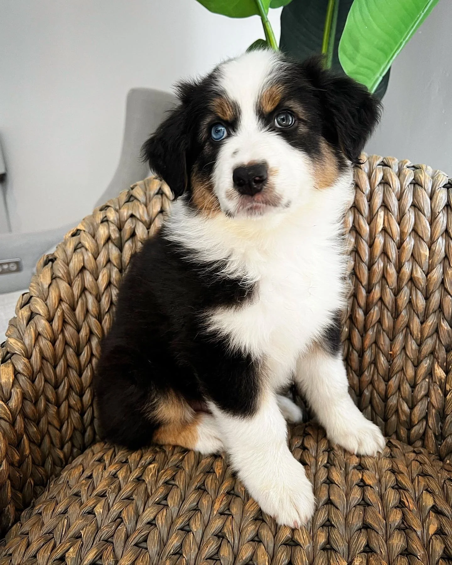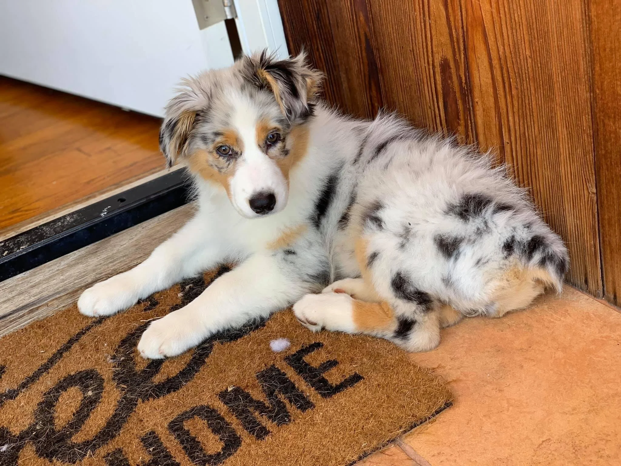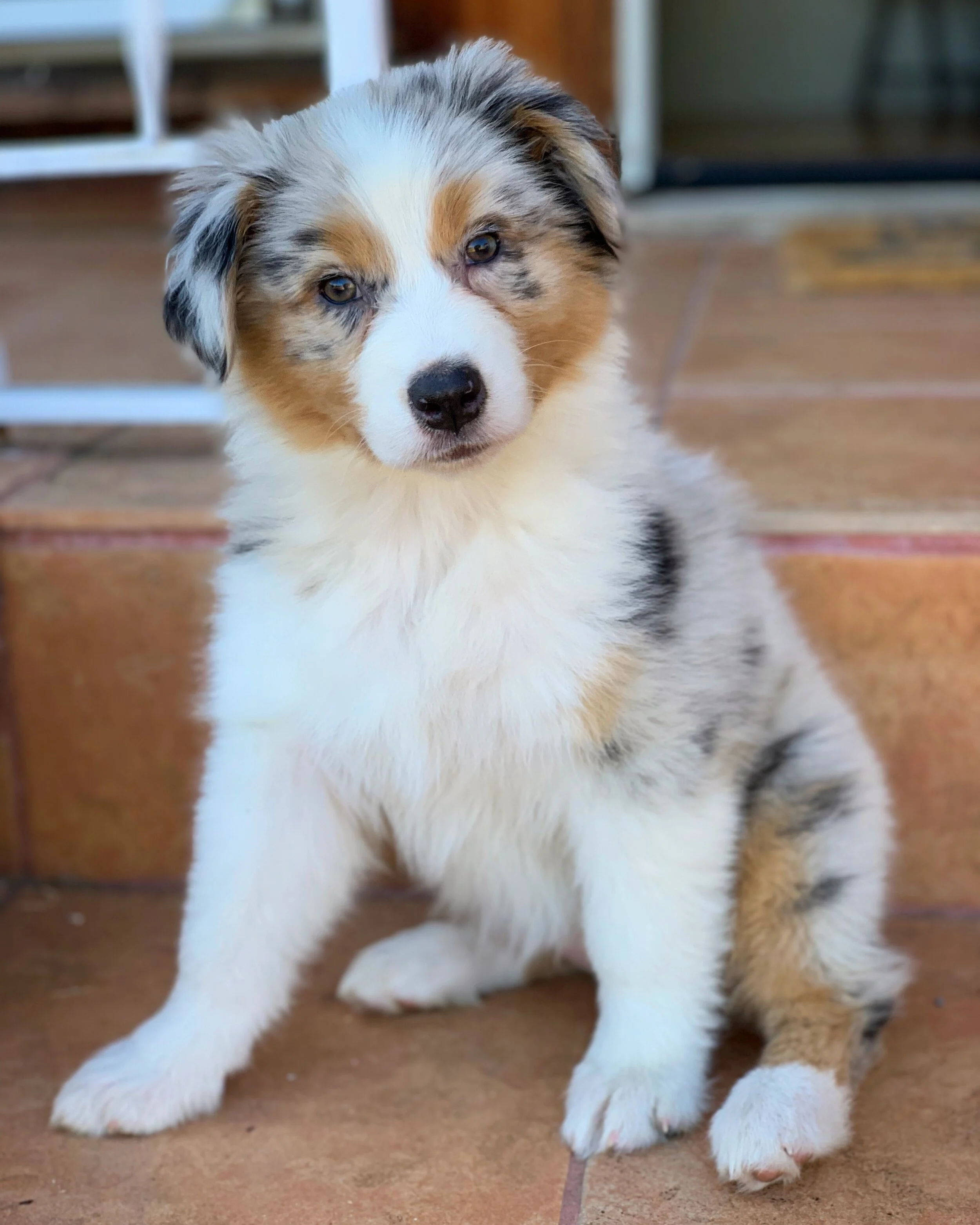 Emmie was the sweetest and calmest pup in the litter, her temperament was why we kept her. She grew up to be an absolutely gorgeous red tri with striking blue eyes, which was a bonus! She is extremely intelligent, affectionate and loyal. She has always been more of a people dog than a dog dog which has made her recall excellent. Emmie is perfectly behaved around kids and naturally assumes the role of being their baby sitter. She is very athletic and loves to cuddle on the couch at the end of the day.
